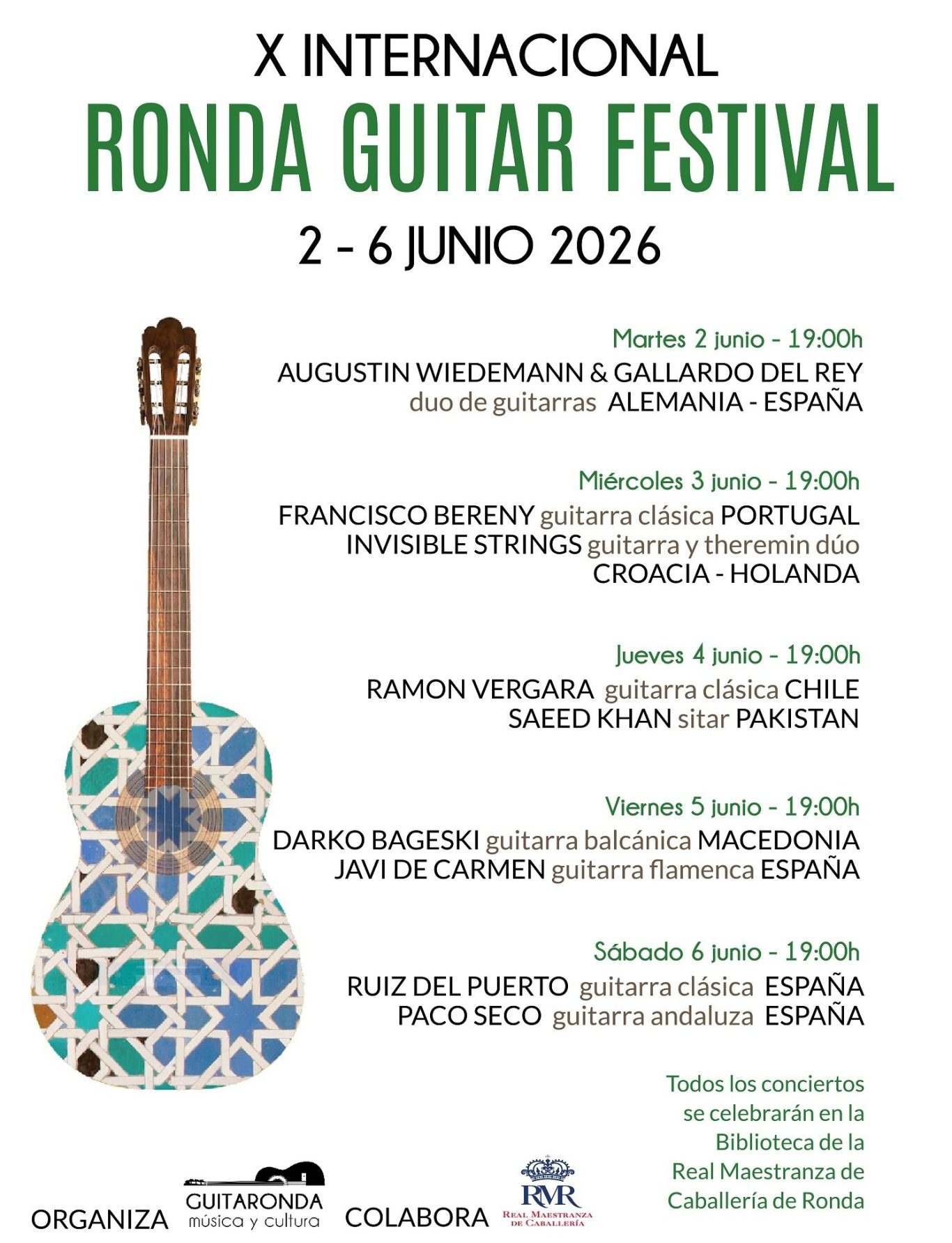 The Festival turns the city of Ronda into an annual international meeting point for music and guitar lovers, seeking to stimulate meetings between guitarists and music and guitar lovers from different countries.